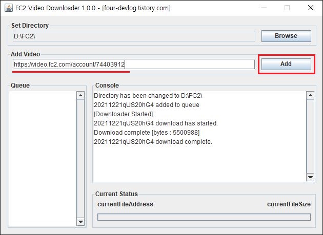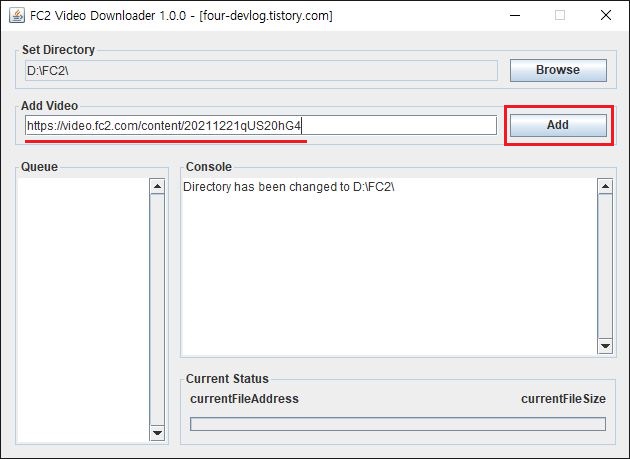영상 주소 써넣고 Add 버튼 눌러주면 대기열에 들어갑니다.